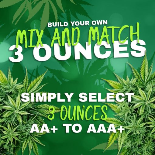 With our3 Ounce Mix & Match you can build your own 3 ounce bundle by selecting from our current rotation of indica, sativa and hybrid strains! Each option comes in a 1 ounce (28g) variation for a total of 3 ounces (84g).