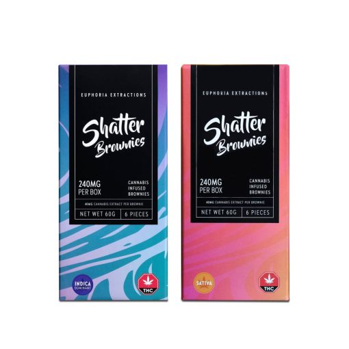 Experience indulgent bliss with Euphoria Extractions Shatter Brownies, infused with full spectrum cannabis shatter and artisan cocoa powder. Each pack contains 240mg of THC, with six brownies in Indica or Sativa options for tailored effects. Elevate your senses with premium ingredients, ensuring unmatched taste and potency in every bite.