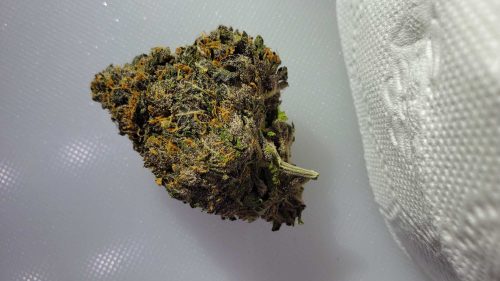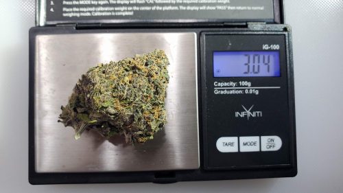 Very nice smell Diesel/lemon, more diesel once busted up. Got a mix of well trimmed buds from tiny, all the way to over 3 grams. Nice purples, fiery orange hairs, and bright green leaves.